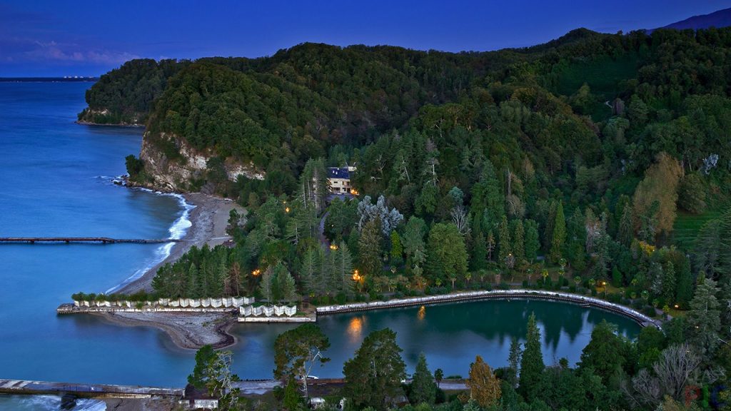 В самых зарослях многолетних деревьев находится дача Сталина. Такое месторасположения не случайно. Дача вождя должна была быть скрыта от посторонних глаз. Рассказывают самые разные истории о даче и о том, какие события здесь разворачивались. Это неудивительно, потому что и вся жизнь Сталина была окутана всевозможными загадками и тайнами. Если посмотреть на дачу с высоты птичьего полёта, то она напомнит корабль. Добраться до дачи можно по серпантину. Говорят, что есть и малоизвестная тропа через горы, проложенная специально для вождя.